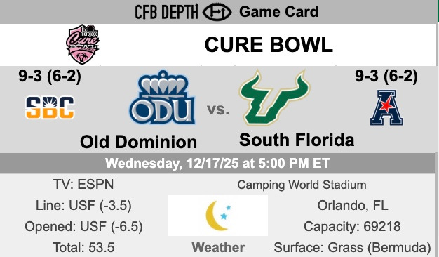 Let's take a close look at the Cure Bowl featuring the USF Bulls and Old Dominion Monarchs from Camping World Stadium in Orlando, Florida.