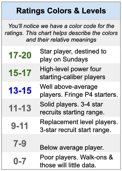 At CFBDepth, we are data-driven and data-informed, utilizing all the cool buzzwords that make us feel high-tech. But, we do mean it. Our player ratings are a combination of multiple data sources, consolidated into one place, weighted and normalized to a scale of 0-20. So, where do they come from, and how exactly are they applied to the insights that come from them? That's a fair question, and one that's important for you to understand before diving fully into the daunting pages that follow.