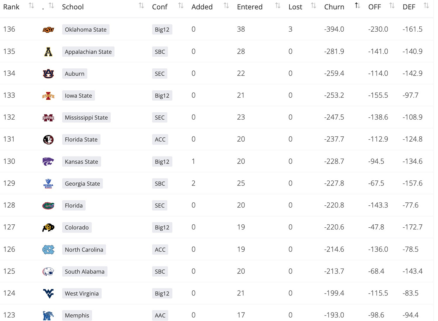 You can view all of the sortable team ‘portal churn’ rankings by clicking this button below: