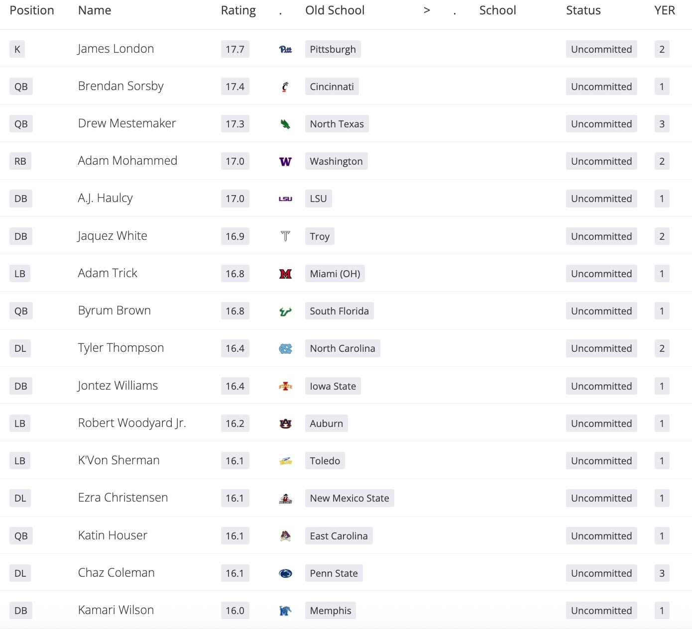 Since we only have a small number committed at this point — we’ll show you who we have as the top ten most impacted teams by the portal entries: