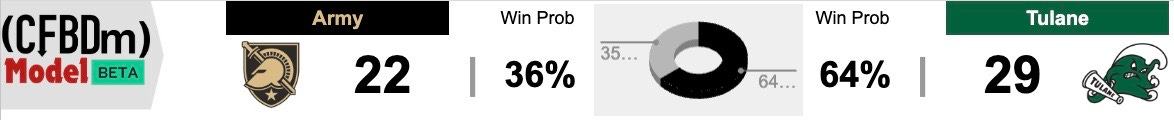 That’s why we’ll open with this disclaimer. This model really is still a work-in-progress. One trend we are noticing is that it is slow to come off of teams that are showing on the field that they might not quite be up to snuff. This is not like other models. It focuses less on past results and more on the current talent level on the field — driven by our player ratings, which are based on many data sources, and by our squad's playing time projections. Of course, other factors go into this, but that is the gist. The Model is like the ‘Tin Man’ when it comes to this thing. Had we been personally burned as many times as the Toledo Rockets have burned us this season, we’d swear them off. However, the Model still sees a significant advantage and suggests them (again) nonetheless.