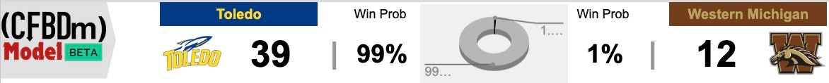 These are two programs going in opposite directions. This is the perfect time for a regression to the mean, which is why the line doesn’t appear high enough. The Rockets have been tested with an eight-point loss at Kentucky and passed a test, handling Western Kentucky, 45-21. Throw out the 60-0 win over Morgan State, and you still have a solid early-season resume. The data behind it tells a similar story. Similarly, the Broncos have played an impressive slate thus far, with respectable losses to Michigan State and Illinois on the road. They were right in the game against North Texas sandwiched between those Big Ten games. Now, as both teams open up MAC play in 2025, the talent edge on both sides of the ball appears to favor the Rockets. Sure, covering two whole touchdowns on the road is no small order, but a veteran coaching staff will have this team ready and will take full advantage. It will certainly help if a pair of talented defensive linemen — Avery Dunn and Martez Poynter — are able to shed their ‘questionable’ tags and get on the field to help shut down whichever quarterback Lance Taylor turns to in this one. Simulation suggests: all Rockets.
