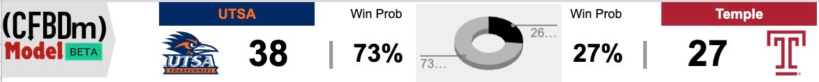 The Model really likes this UTSA offense — and is highly unimpressed with Temple’s defense. That’s about the gist of it. Both teams are coming off of bye weeks and Temple has a few more injury concerns on their side with a lot of questionables, though the expectation is that most will have used the week off rest up and get on the field. Will it matter? The game is in Philly, so that should help the Owls and K.C. Keeler keep this one close, but it is the explosive plays from the Roadrunners that will get this one moving and the Owls have enough on offense, including what appears to be a nice little offensive line advantage over UTSA, to get on the board. If we can get this to go back-and-forth a bit, we’ll get to the total and then UTSA can pull away in the fourth quarter for a little ‘two for one’ special.