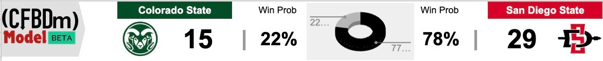 It remains interesting and somewhat of a mystery how a Sean Lewis-led team is clearly winning with defense. But that’s where we are in 2025. I’m still checking back to ensure there was no clerical error in the posting of their 35-0 win over Cal in week four. Regardless, they have two shutouts and a 6-3 record (from last week at NIU). The Rams are in a bit of an offensive funk themselves, enough so that another offensive mind, Jay Norvell, is handing over play-calling duties to Matt Mumme. Not much should change in the approach, and they are going with Jackson Brousseau to take over for the struggling Brayden Fowler-Nicolosi at quarterback. Colorado State needs to run the ball, and they appear to have horses to do so, but they must find some room to do so. The other factor at play when examining the ‘Game Card’ is that the Rams are really banged up, including quite a few NEW injuries that will impact this one, including OL Tanner Morley, who was announced ‘out for the season’ after an injury suffered last week. They will also be without a couple of defensive contributors, LB Jacob Ellis and DB Dylan Phelps. Everything piles up and sees a bit of a run away at Snapdragon Stadium on Friday evening: