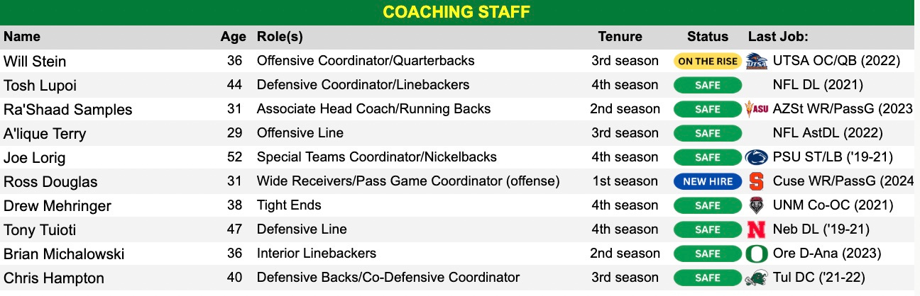 Offensive coordinator Will Stein is just 36-years old and has the keys to one of the best offenses in all of college football. He is considered one of the bright minds and is a sure-fire future head coach (if that’s what he wants), but for now is sticking it out in Eugene with Lanning. He’ll have some new toys to work with and more he can take the new puzzle pieces and build it back up, the reputation only grows.