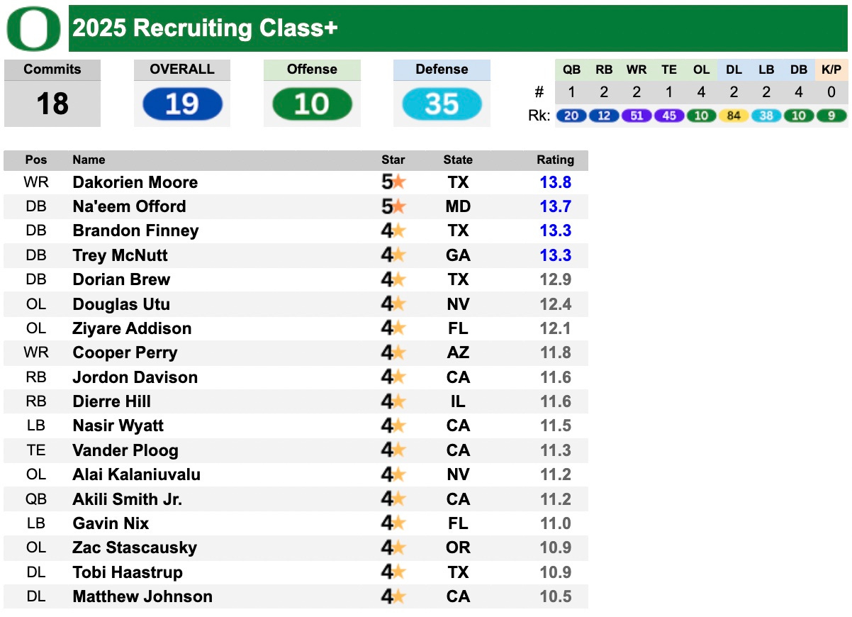 Here is a snapshot of the 2025 Recruiting Class+ with a link to the live page with updates throughout the cycle:
