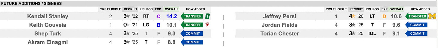 A solid group coming in for this 2025 class with just one 4-star in CB Mason Alexander from Arkansas. They get a good group of high(er) 3-stars and they’ll need to develop. It was an even effort between offense and defense but the focus areas are offensive line (five players, ranked 19th) and linebacker (three players, ranked 25th). They also bring in five defensive backs to the mix.