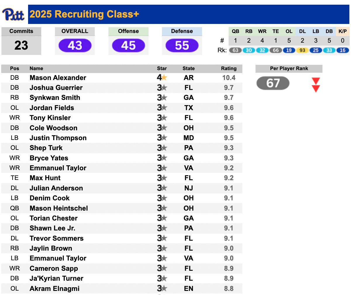 Here is a snapshot of the 2025 Recruiting Class+ with a link to the live page with updates throughout the cycle: